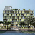 本案計畫需求分為老人服務中心及家庭暴力暨性侵害防治中心兩大空間,在樓層分配上將空間屬性相近區畫歸為同樓層。地上一至四層為老人服務中心,地上四至七層為家庭暴力暨性侵害防治中心,兩種空間分別設置獨立入口,避免相互干擾。 在設計方面,結合周遭城市紋理,將基地北側(貴陽街)及西側(延平南路)沿街的珍貴榕樹、茄苳,投射至建築物立面轉化為自然韻律的黃色皮層,呼應都市紋理環境,同時也帶有科技條碼的意象,淡黃色外觀有著安全溫暖的意涵,隱喻建築物能為弱勢帶來希望。導入綠建築設計,透過立面植生牆串連綠化屋頂平台,形成都市綠廊維持生態永續,也提供學習與活動休憩的空間。