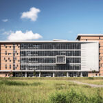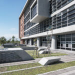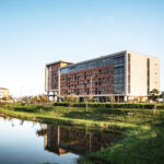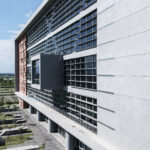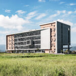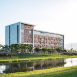 城南基地為臺灣第一座以發展知識經濟為主的科學園區,坐落於人文風情純樸、充滿地域建築特色的宜蘭。建築構想以「人」為出發點,藉由「回歸與對話」詮釋整體建築脈絡。立面揉合宜蘭的田埂與傳統磚造建築意象,轉化為以清水磚、花磚與RC牆面設計之雙層牆構造,企圖融合金屬隔柵與玻璃,將蘭陽平原水田轉譯為建築的造型語彙。 1F交流創意中心及3F多功能室透過挑高室內空間,將自然景觀引入,軟化環境與人文的隔閡,亦提供了更遼闊的視野與寧靜,讓創意科技與自然傳統交流對話。室內中庭與屋頂浮力通風天井,配合夏季季風帶動自然引流,引出室內悶熱空氣、導入室外新鮮空氣,同時藉由天井帶入間接採光,除能節約日間照明、空調用電,也營造舒適優質的室內環境。